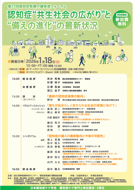 第13回認知症医療介護推進フォーラムに関する情報です。 参加希望の方は直接お申込みください(チラシはこちらをクリック)